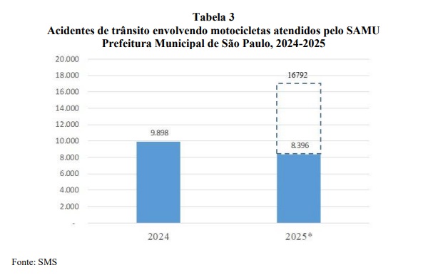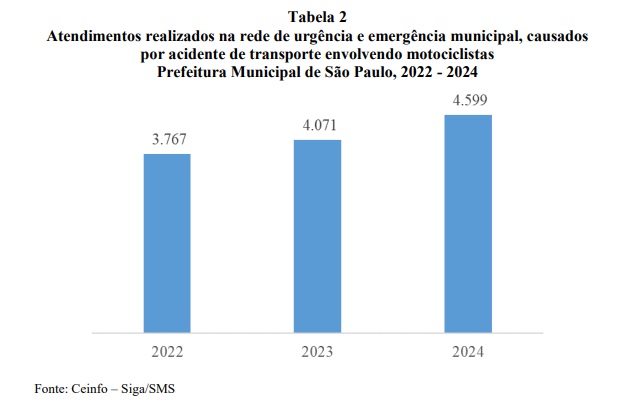 exponencial de acidentes de moto na cidade São Paulo que, mantendo-se nessa tendência,